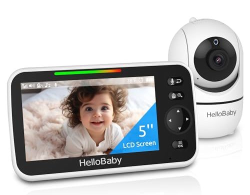 Read More...HelloBaby Monitor, 5”Display with 30-Hour Battery, Pan-Tilt-Zoom Video Baby Monitor with Camera and Audio, Night Vision, 2-Way Talk, Temperature, 8 Lullabies and 1000ft Range No WiFi, Ideal for Gifts