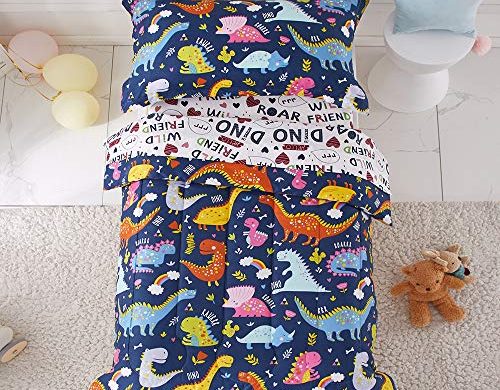 Read More...Joyreap 4 Piece Toddler Bedding Set, Standard Size Colorful Dinosaur Printed on Navy, Includes Quilted Comforter, Fitted Sheet, Top Sheet, and Pillow Case for Boys n Girls